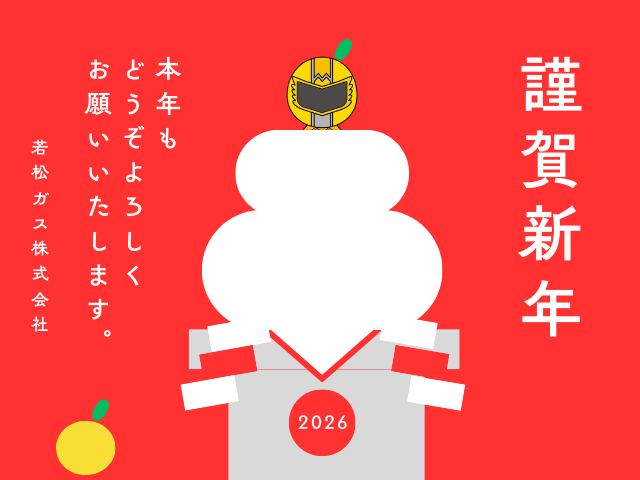 2026.1.6 その他 2026年 新年のご挨拶 新年のご挨拶を申し上げます。 皆さまにおかれましては、希望に満ちた新年をお迎えのことと心よりお慶び申し上げます。 旧年中は、格別のご厚情を賜り、誠にありがとうございました。 本年も地域の皆さまの暮らしに寄り添い、安心してご利用いただけるサービスの提供に努めてまいります。 引き続き変わらぬご愛顧を賜りますよう、お願い申し上げます。 令和八年 一月 若松ガス株式会社